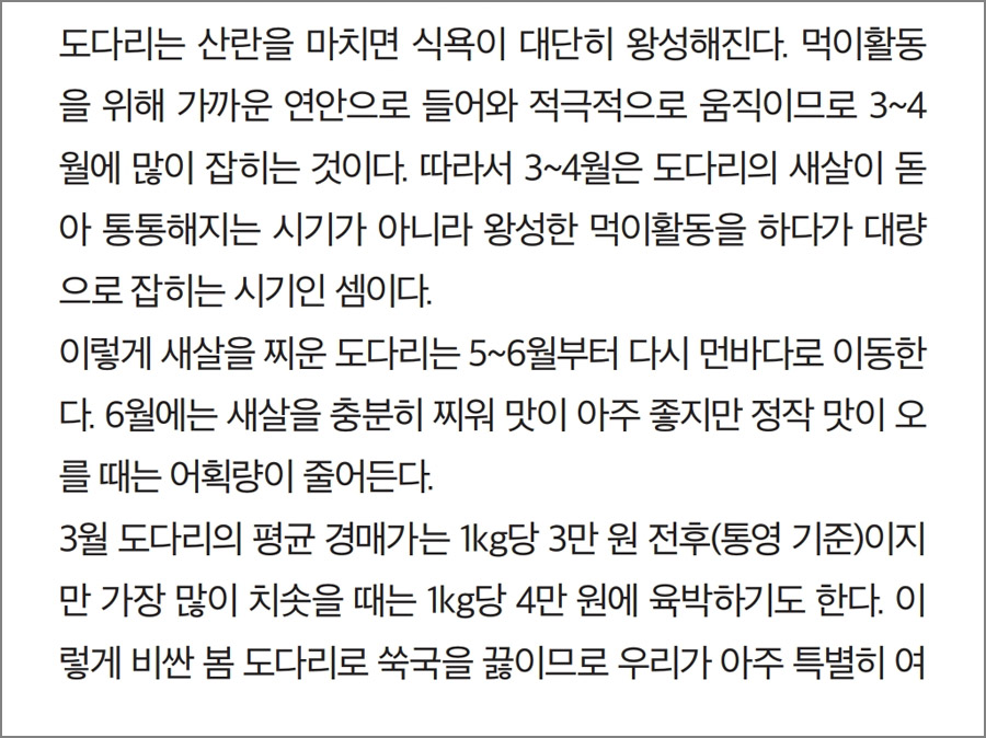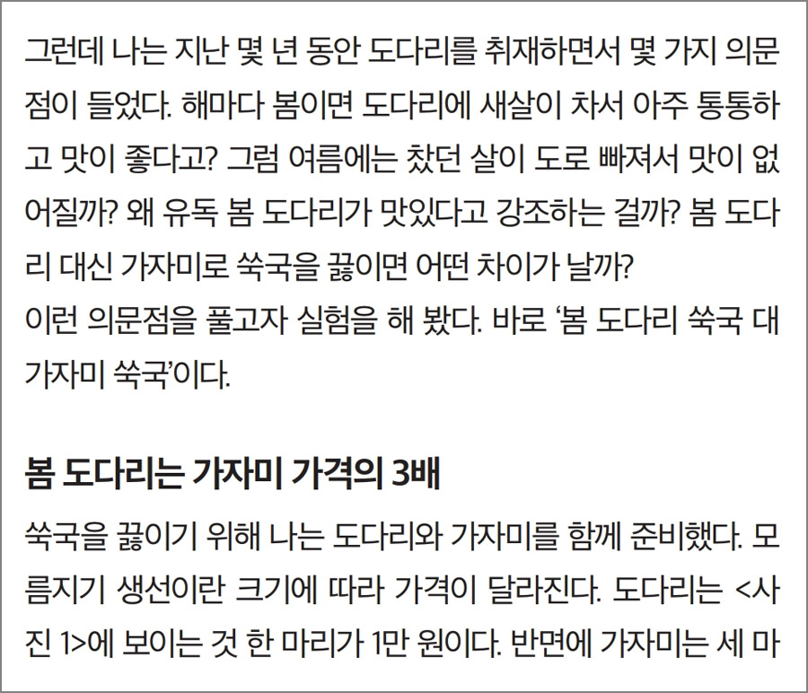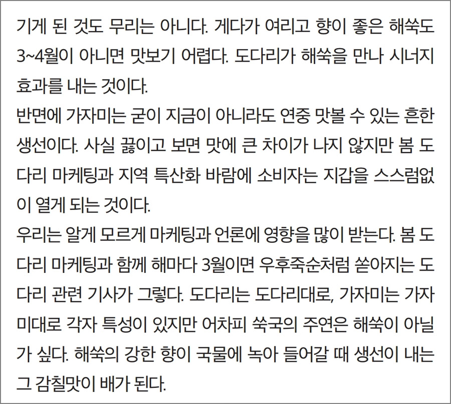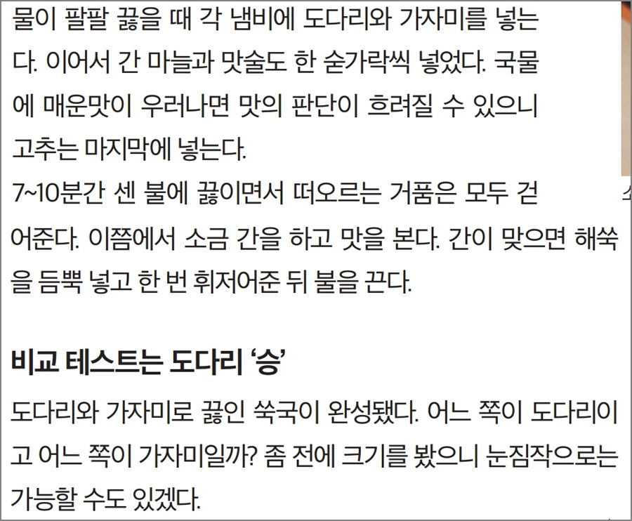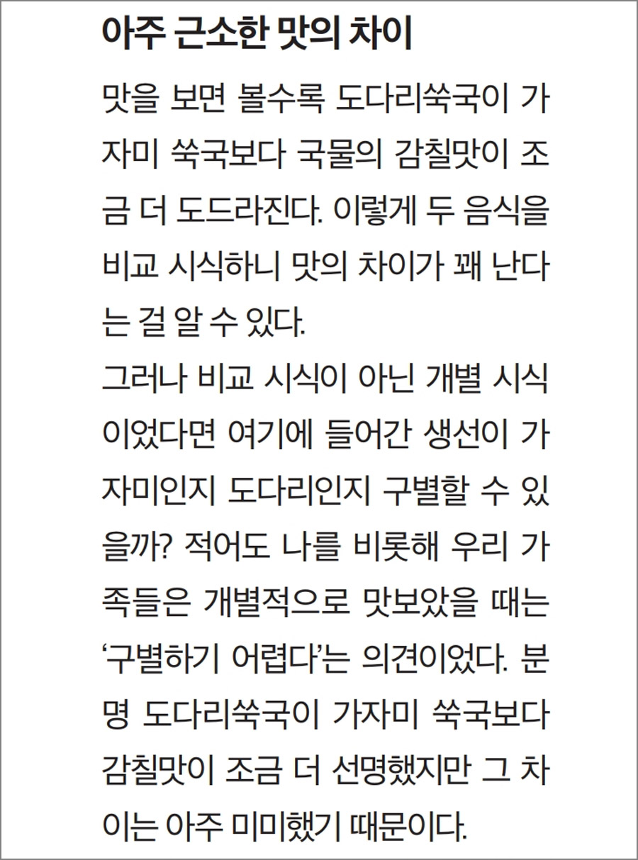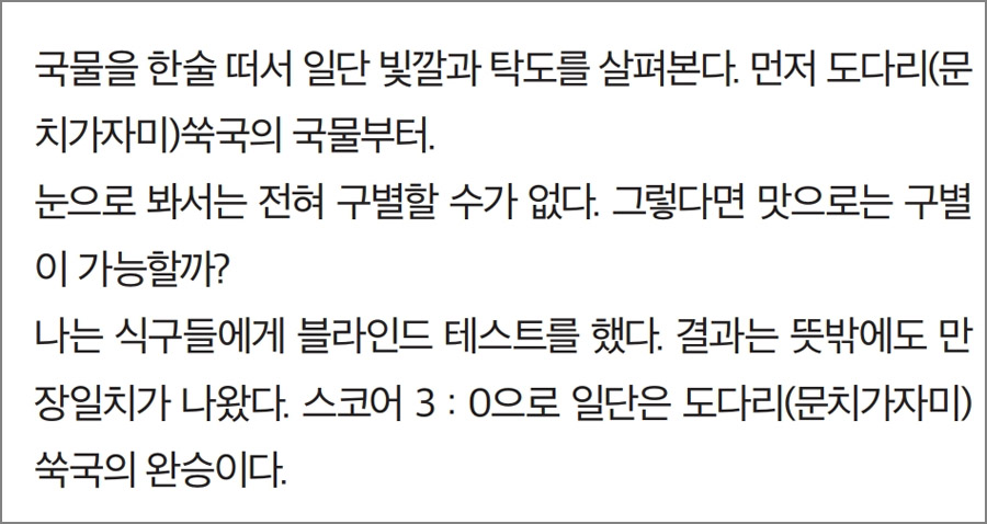 1) 시즌 특집 비교체험 : 봄 도다리 VS 가자미 쑥국 끓일 때 맛의 차이는?