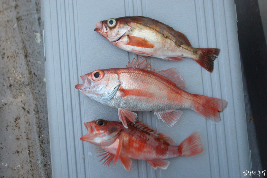 동해는 생활낚시 천국입니다. 대상어도 돔 종류보다는 반찬감이 많지요. 대표적으로 고등어, 학꽁치, 가자미, 임연수어 등이 있습니다. 동시에 먼바다 심해 선상낚시가 포항, 부산을 중심으로 유행하는데 대표적으로 6광구로 들어가는 심해 참우럭(표준명 띠볼락), 홍감펭, 금테(표준명 눈볼대) 같은 희귀하면서도 매우 값비싼 어종을 노립니다.