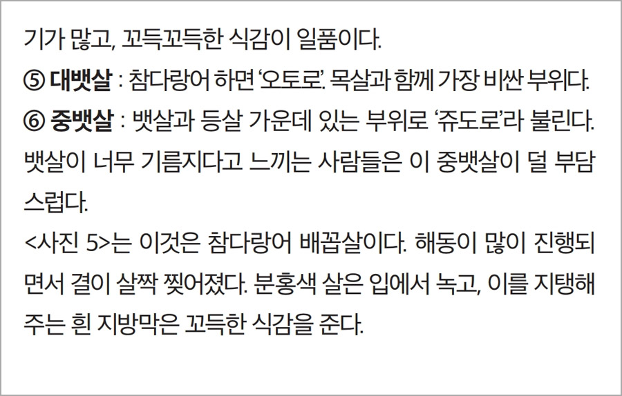 2) 재미있는 수산물 이야기 : 축양 참다랑어, 해동방법과 부위별 맛 감별