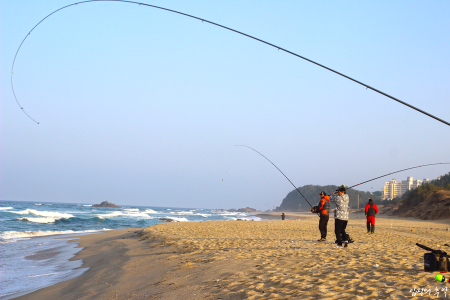 그래서 원투낚시는 입질이 없을 때 수시로 끌어서 모래 먼지를 일으키고, 여밭에서는 살짝살짝 고패질을 해주는 등 미끼를 움직이게 해 주변에 있는 대상어의 시선을 끌어주어야 합니다. 그래도 입질이 없으면 곧장 채비를 걷어 미끼를 새로 갈아주는 부지런함이 필요해요. 그랬을 때 조과는 상당한 차이를 낼 것입니다.