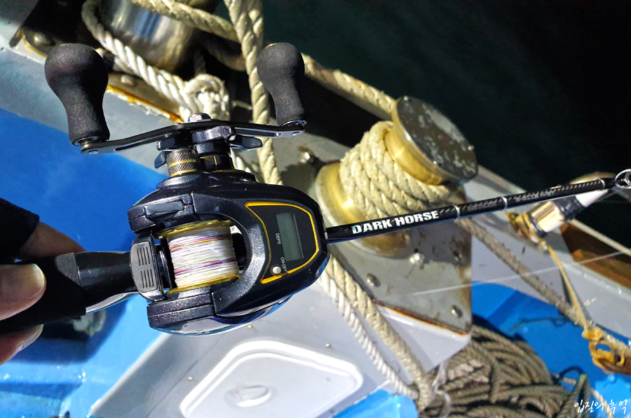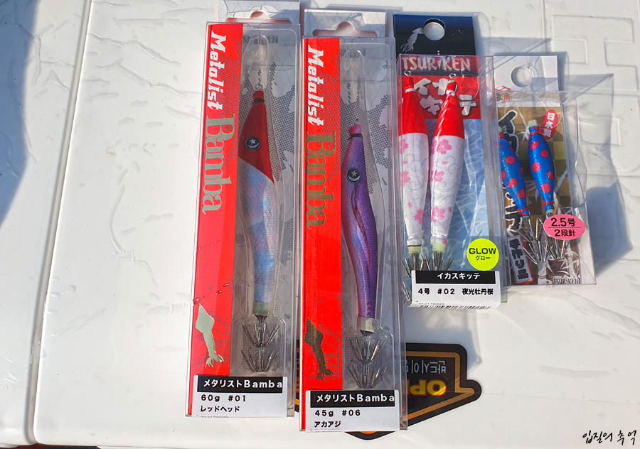 채비는 엔에스 사의 한치 메탈게임 전용대인 메탈리코에 수심계가 표시되는 베이트 릴, 그리고 쯔리겐의 메탈리스트 밤바와 이카스킷테를 사용했습니다.