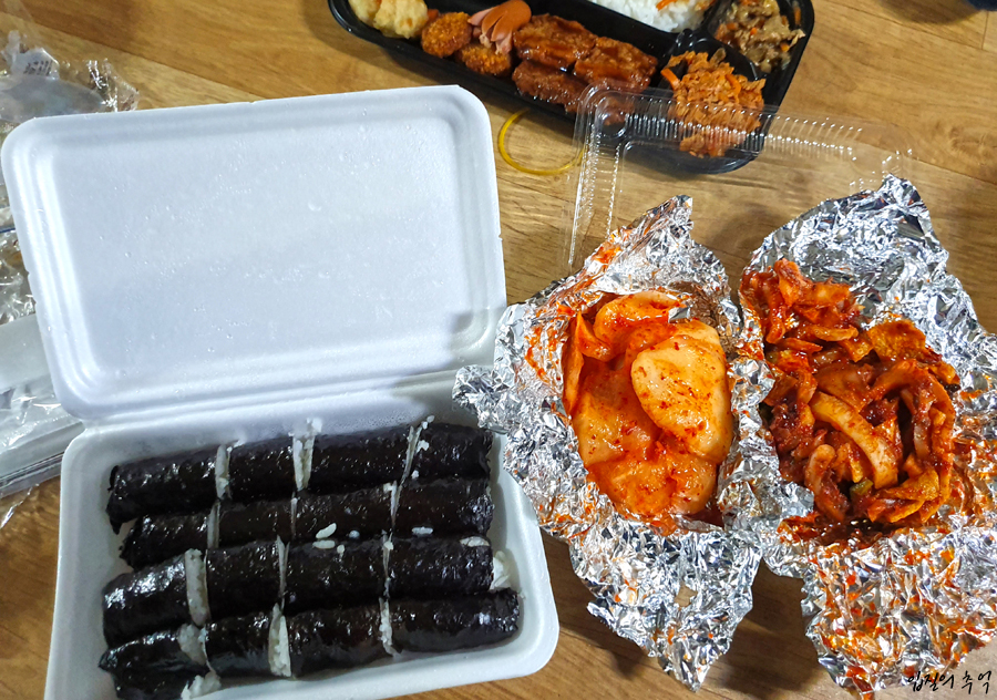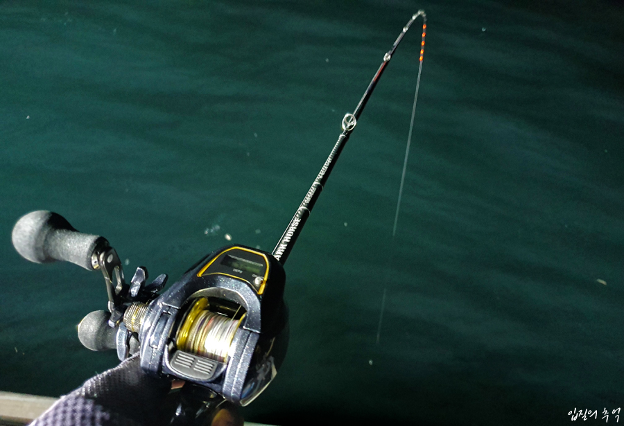 낚시 시작한지 10분쯤 되었을까요? 저녁 먹으랍니다. 엇 시간이 벌써 그렇게 됐나? 싶어 시계를 보니 9시. 오랜만에 충무김밥으로 요기하고 일어나는데 아까와는 달리 힘이 솟구칩니다? 김밥 좀 먹었을 뿐인데 허기가 가시니 의욕도 생기고 체력도 재충전되는 기분도 들어서 열심히 흔들었습니다.