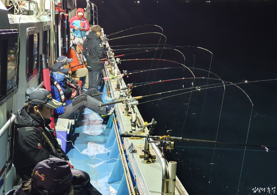 상황이 이러하자 한치 낚시를 대하는 꾼의 태도도 시간대 별로 확연한 차이를 보였습니다. 사진은 오후 10시 상황.
