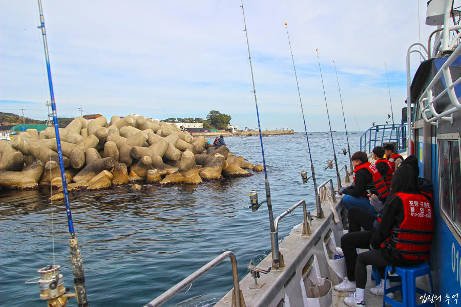 같은 시기 에깅 낚시로는 봄에 제철 맞은 화살오징어(동해 한치, 야리이까)가 호황을 맞고, 4월부터 여름을 거쳐 가을까지는 무늬오징어 시즌이 전개된다. 이밖에도 포항권에서는 생활 선상낚시가 인기가 있는데요. 항에서 10분 거리 안팎에 있는 양식장 근처를 포인트로 삼는 고등어, 학공치 흘림낚시가 가을부터 겨울 사이 이어지며, 먼 바다(왕돌초 및 6광구)에서는 사철 내내 대구와 홍감펭, 눈볼대(금테), 띠볼락(참우럭) 같은 심해 외줄낚시가 성행합니다.