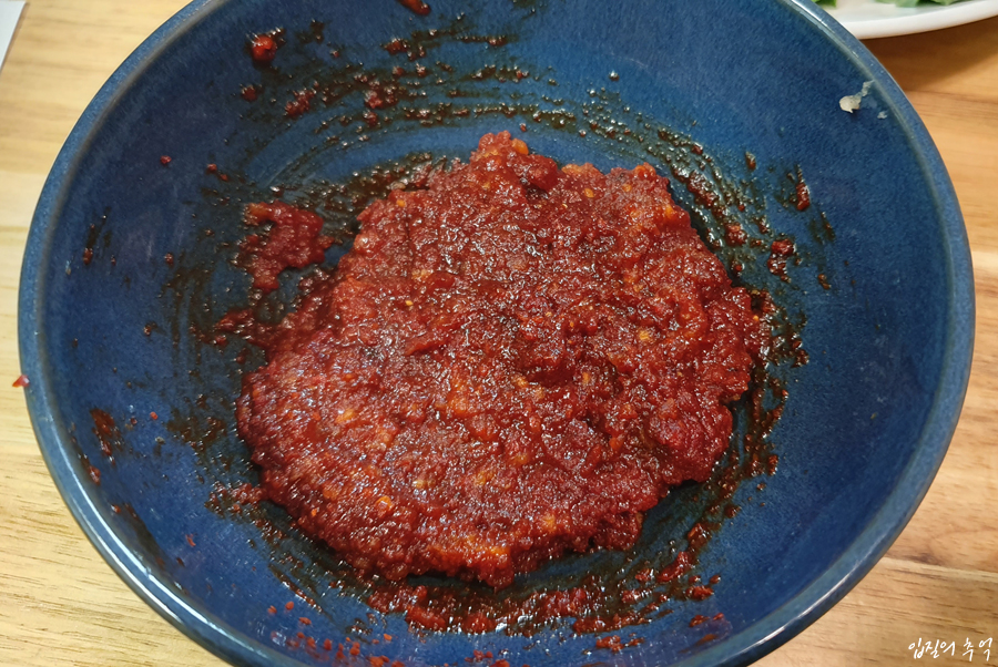 고춧가루 3숟가락 반, 고추장 1숟가락, 간마늘 1큰술, 다진 생강 조금, 진간장 3숟가락, 국간장 1/2 숟가락, 후추 조금, 조미료(MSG) 조금