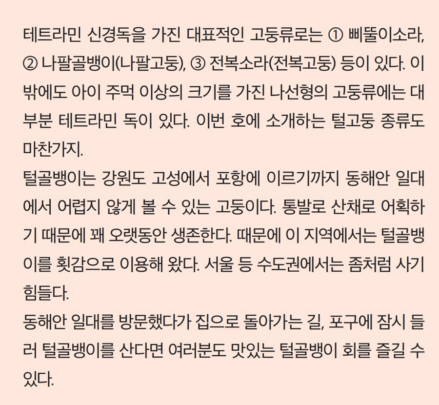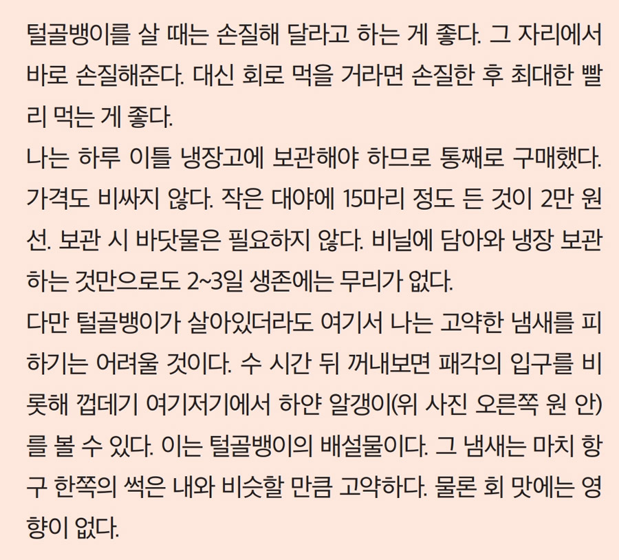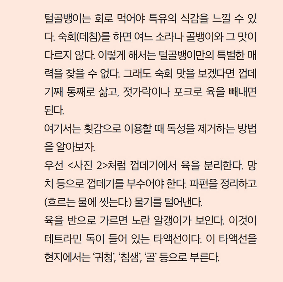 2) 꾼의 레시피 : 신경독만 제거하면 이보다 맛있는 골뱅이는 없다! "털골뱅이 회 & 회무침"