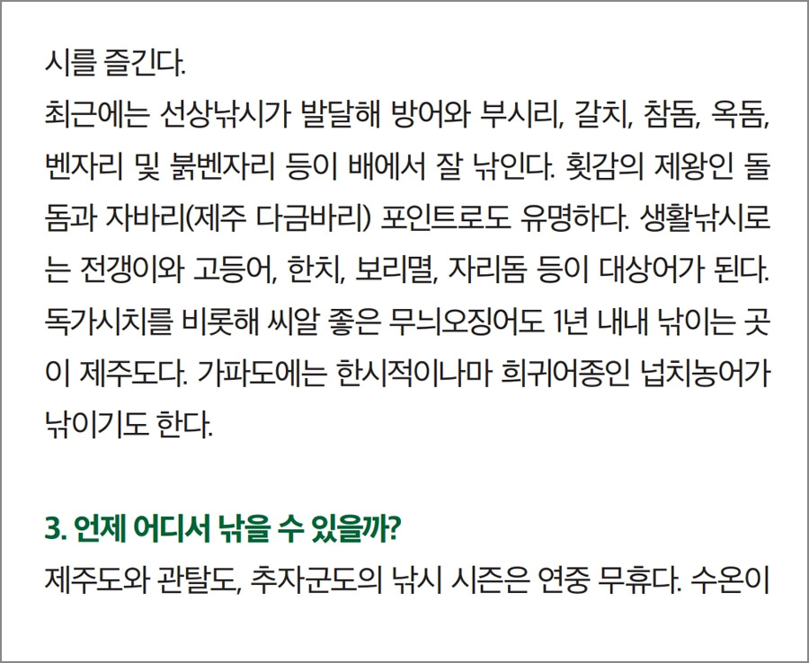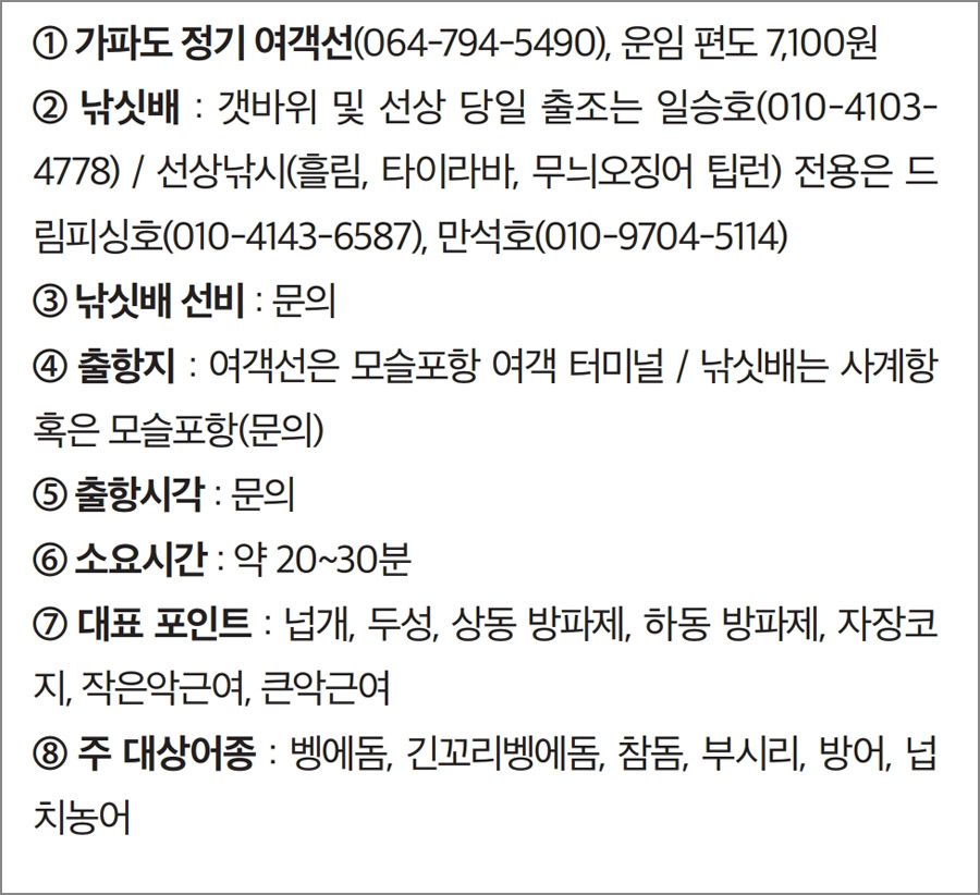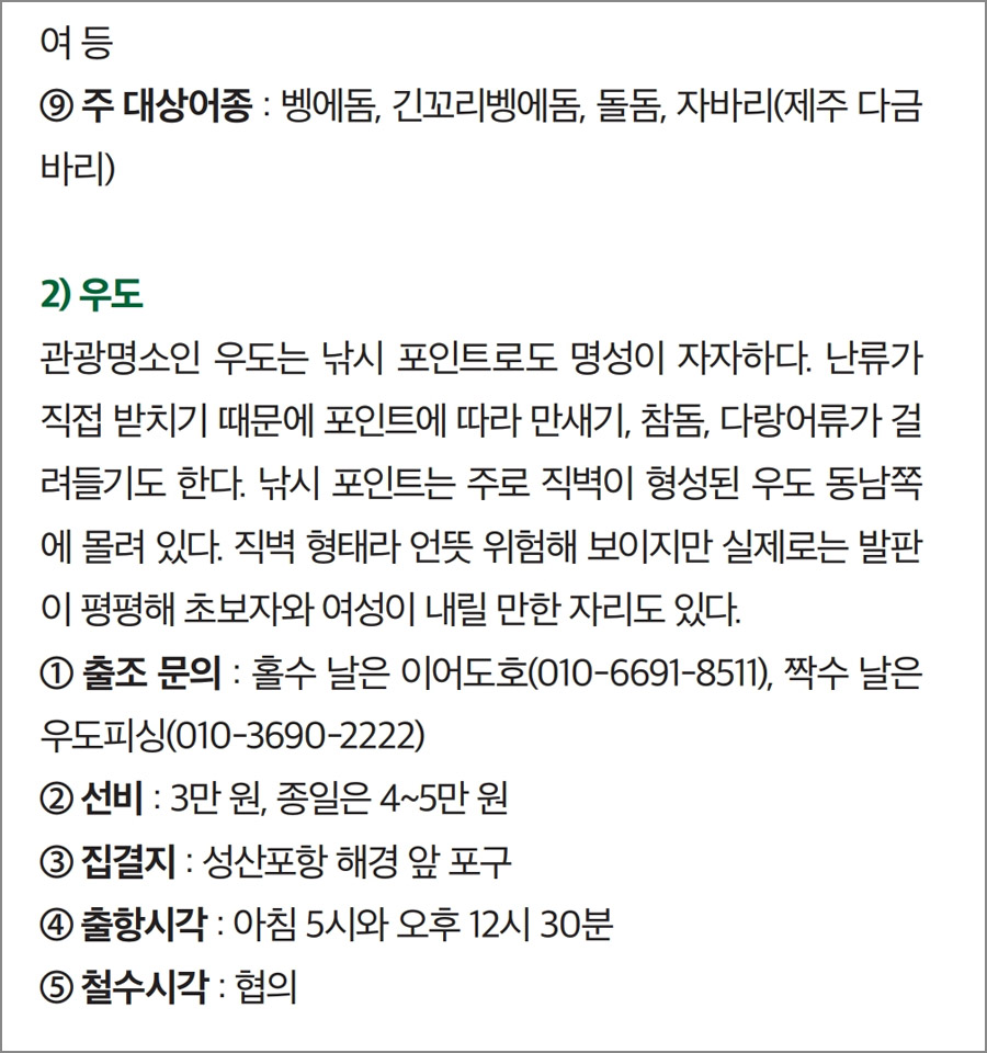 3) THE BETTER FISHING : 바다낚시 가이드(4) 제주도 - 부속섬 낚시 포인트와 유어선 정보