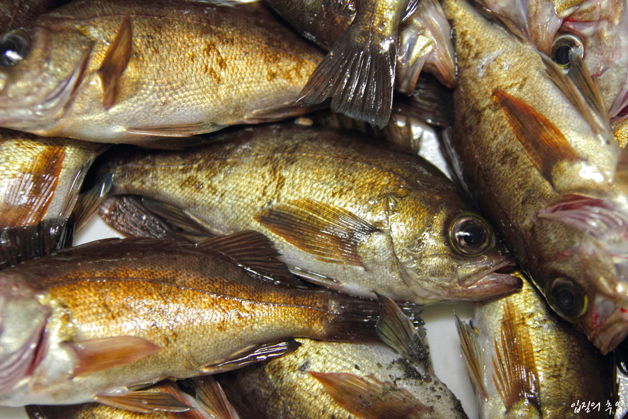 비늘만 대충 치고 칼집만 내서 굵은소금을 척 뿌려 구운 볼락 구이는 비린내가 없고 담백할 뿐 아니라 구수한 맛도 일품이라 주당들이 가장 선호하는 안줏거리이기도 합니다. 볼락의 활약상은 이게 끝이 아닙니다. 작은 볼락은 젓볼락이라 하여 젓갈을 담그고, 일부는 뼈째 썰어 뼈 회로 즐기는가 하면, 일부는 생볼락을 뼈째 썰어 깍두기를 담그거나 김장에 쓰이기도 합니다.