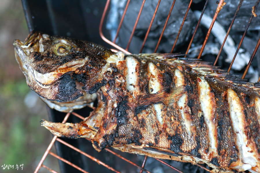 특이하게도 벤자리는 불로 구웠을 때 부드러웠던 살이 다시 단단해집니다. 그 질감이 마치 복어와 비슷하며, 생선계의 토종닭이라 불러도 좋을 만큼 씹고 뜯는 맛이 특징입니다. 단순히 칼집만 내어 굵은소금 쏠쏠 뿌려 굽기만 하면 되는데, 이왕이면 팬에 기름을 두르고 굽기보다는 야외에서 직화로 굽는 것을 추천합니다.