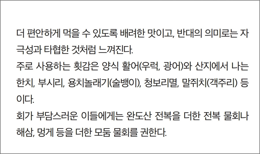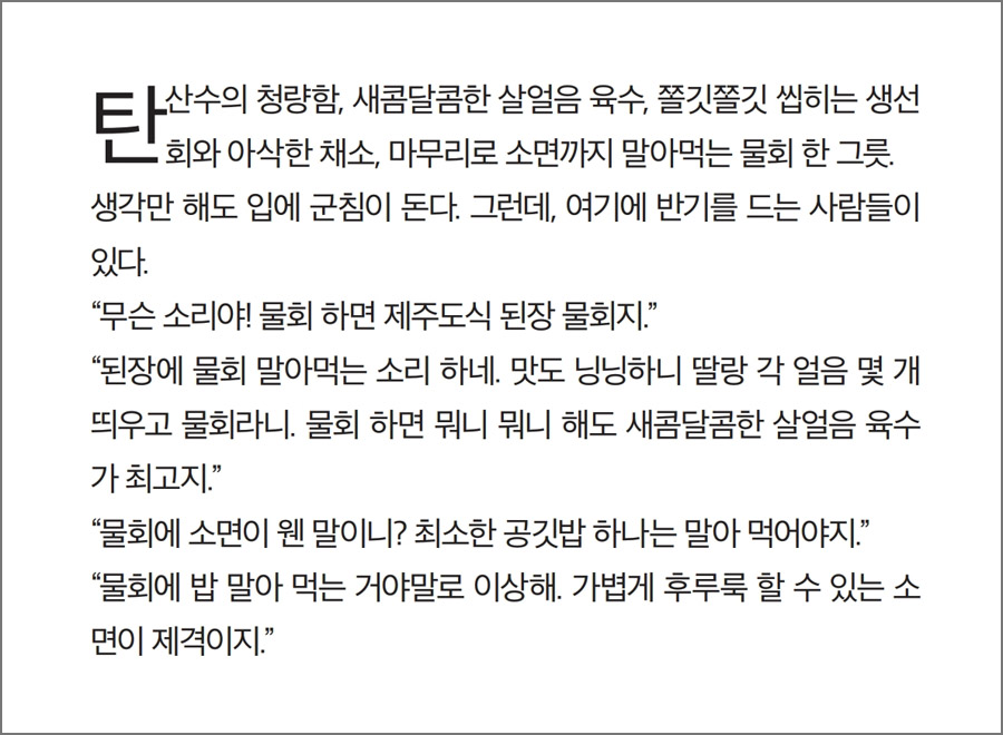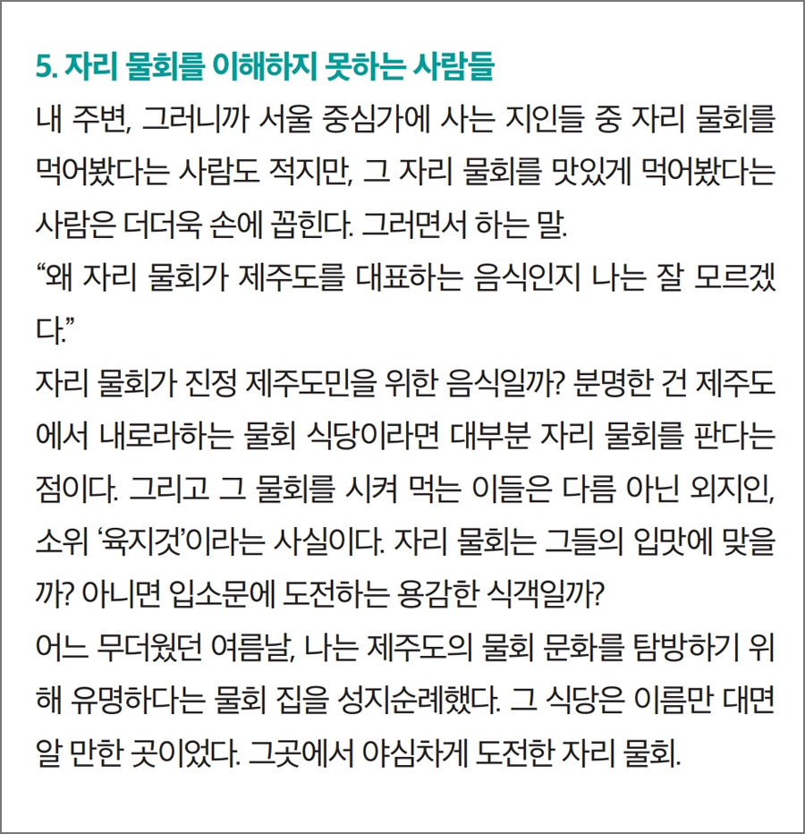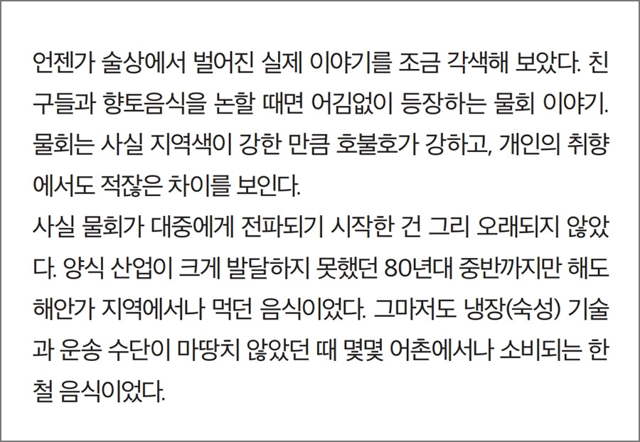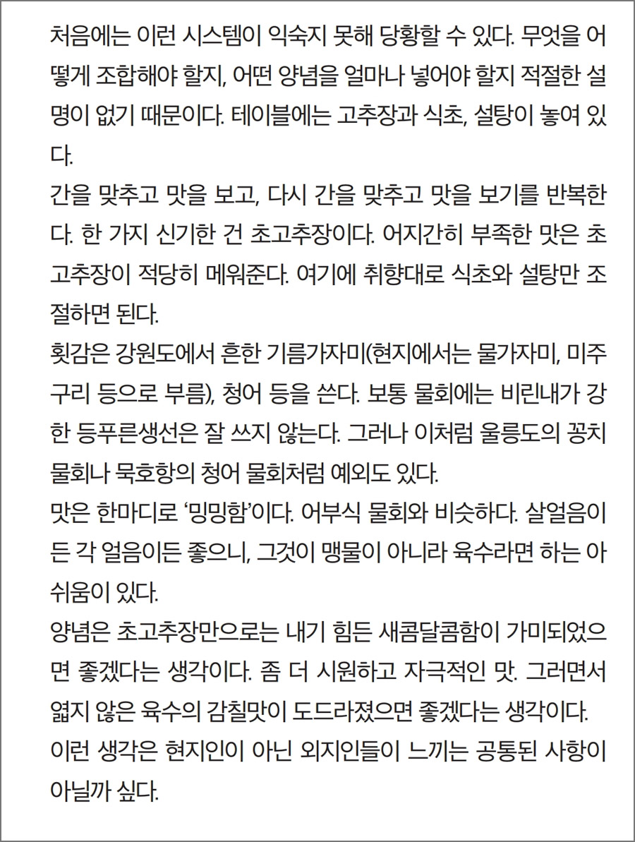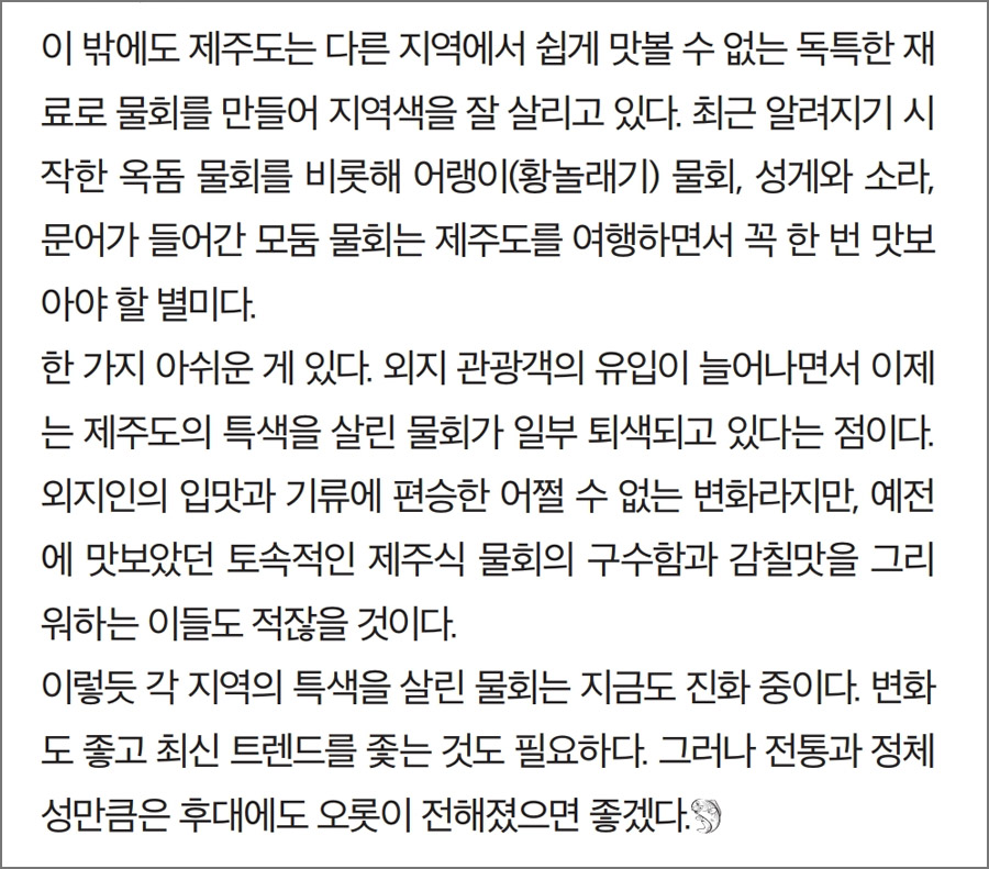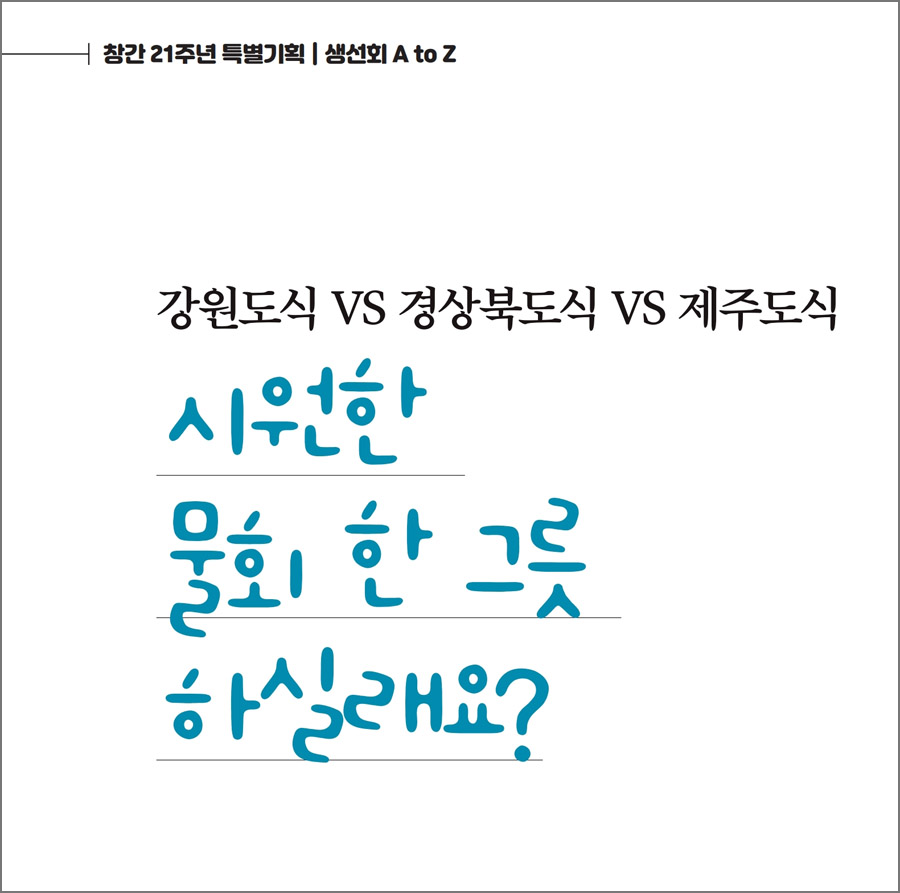 1) 재미있는 수산물 이야기 : 강원도식 vs 경상북도식 vs 제주도식, 시원한 물회 한 그릇 하실래요?