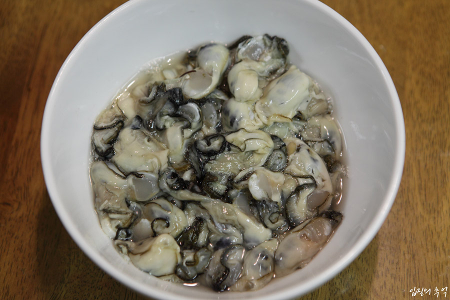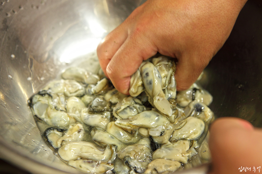 3) 소금 1~3%가 들어간 염수에 한번 더 헹군다. (굴을 보관할 때도 소금물에 보관한다.)