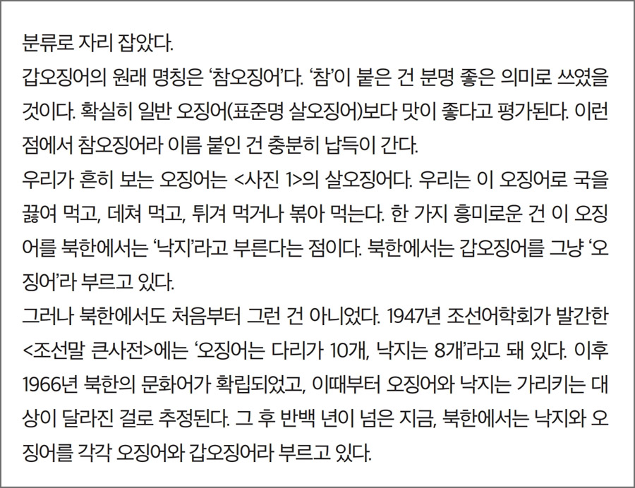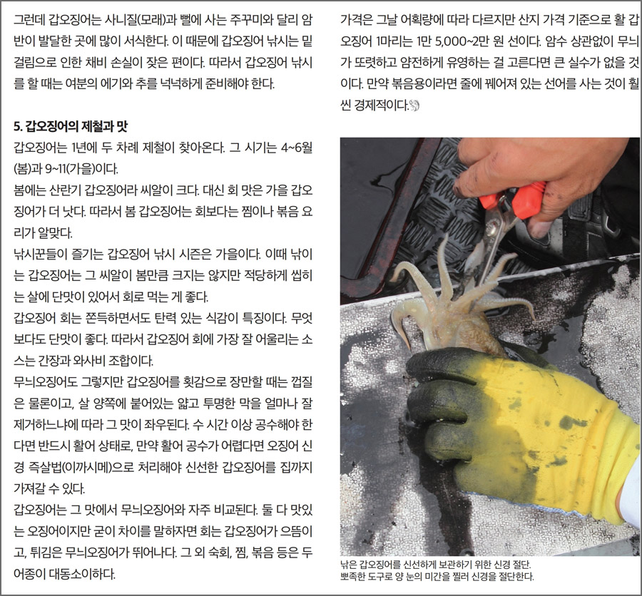 2) 우리 물고기 바로 알기 : 가을 갑오징어 회는 무늬오징어보다 달착지근하다.