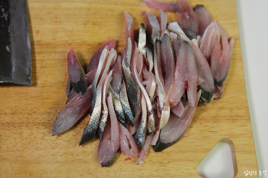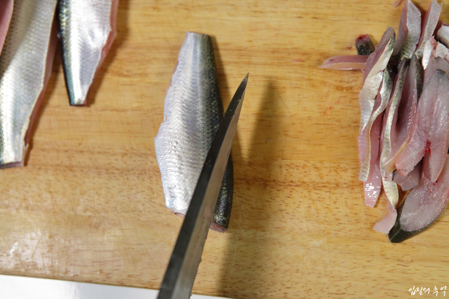 전어라고 무조건 뼈째회가 어울리는 것은 아닙니다. 10월을 넘기면 훌쩍 자란 전어(일명 떡전어)가 20cm를 넘기게 되는데, 이때부터는 뼈째회보단 다른 생선처럼 포를 떠서 길쭉하게 썰어먹는 것을 추천합니다.