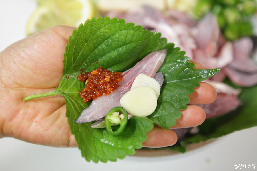 그래서 전어를 비롯한 대부분의 뼈째회는 가시를 끊어주는 방향으로 썰어야 하며, 입에 넣을 때 적당히 씹히면서 위화감이 적고, 꼬득꼬득한 식감에 고소한 뼈맛이 더해집니다. 뼈째회는 식감이 강해 각종 쌈채에 쌈장과 마늘, 고추 등을 곁들이는 회 쌈 문화와도 곧잘 어울립니다.