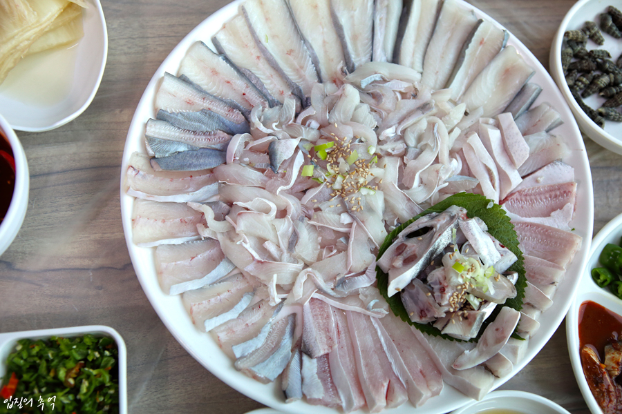 이밖에도 서해안 일대에선 준치와 밴댕이, 웅어를 뼈째 썰어먹고, 경남권에서는 작은 돌돔(줄돔)과 씨알 작은 볼락, 쥐치까지 뼈째 썰어먹는데 돌돔의 경우 뼈가 단단한 편이므로 최대한 작은 씨알을 선택해 얇게 써는 것이 포인트입니다. 참고로 돌돔과 쥐치, 볼락은 양식이 되며, 작은 크기를 소비하는 시장이 있기에 1년만 키우고 출하하는 경우도 적잖습니다.