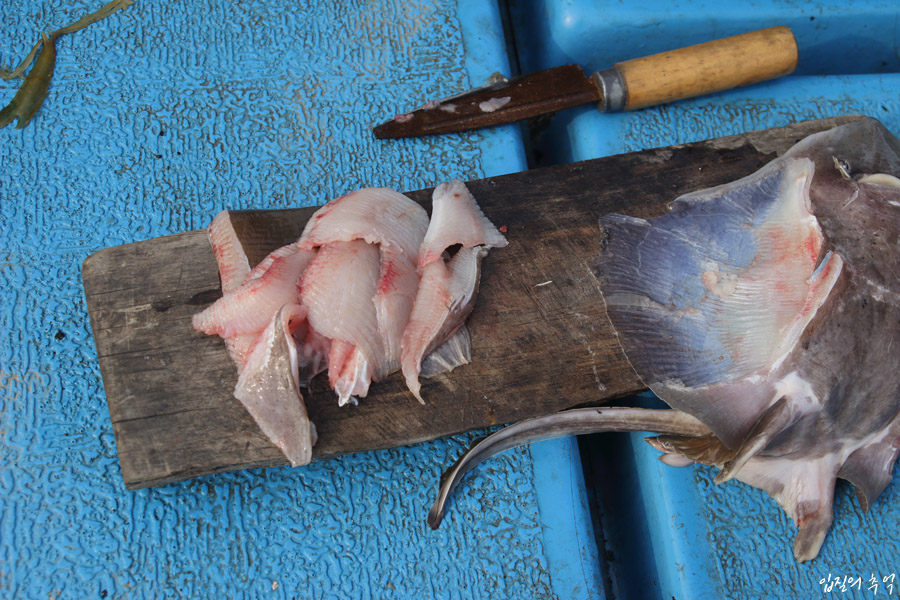 수컷은 생식기가 달려 있어 구분이 쉬운데 어판장 거래 가격을 보면 확실히 암컷이 수컷보다 비싸다는 것을 알 수 있습니다. 간재미 중 최고 별미는 날갯살입니다.