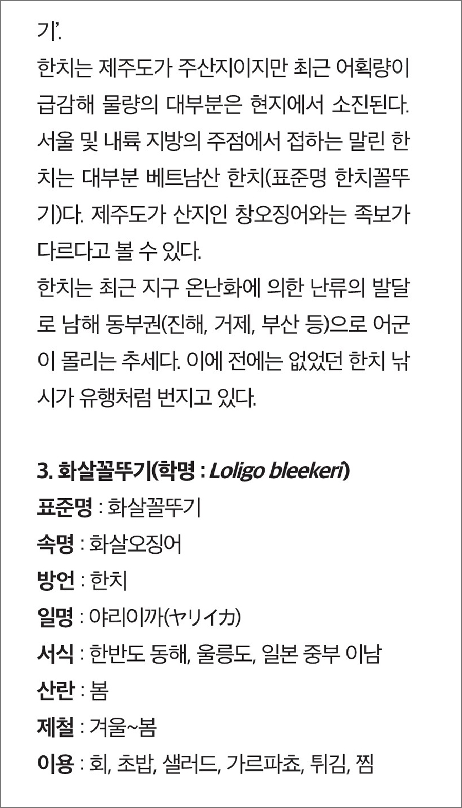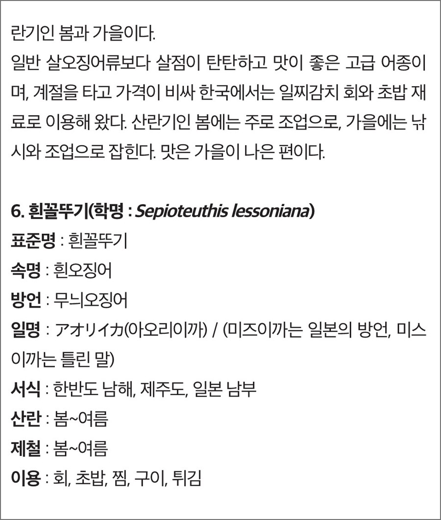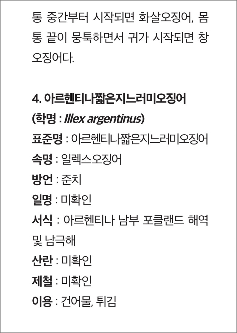 2) 우리 물고기 바로 알기 : 우리 식탁에 오르는 오징어들의 족보를 파헤쳐본다.