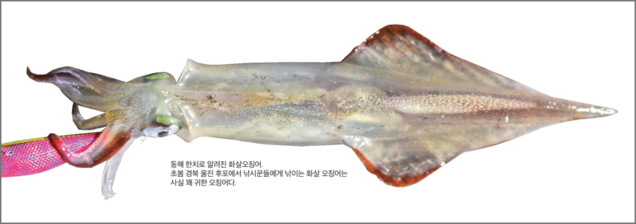 ※ 위 주석이 뒤바뀌었습니다. 오른쪽이 창오징어, 왼쪽이 화살오징어입니다.