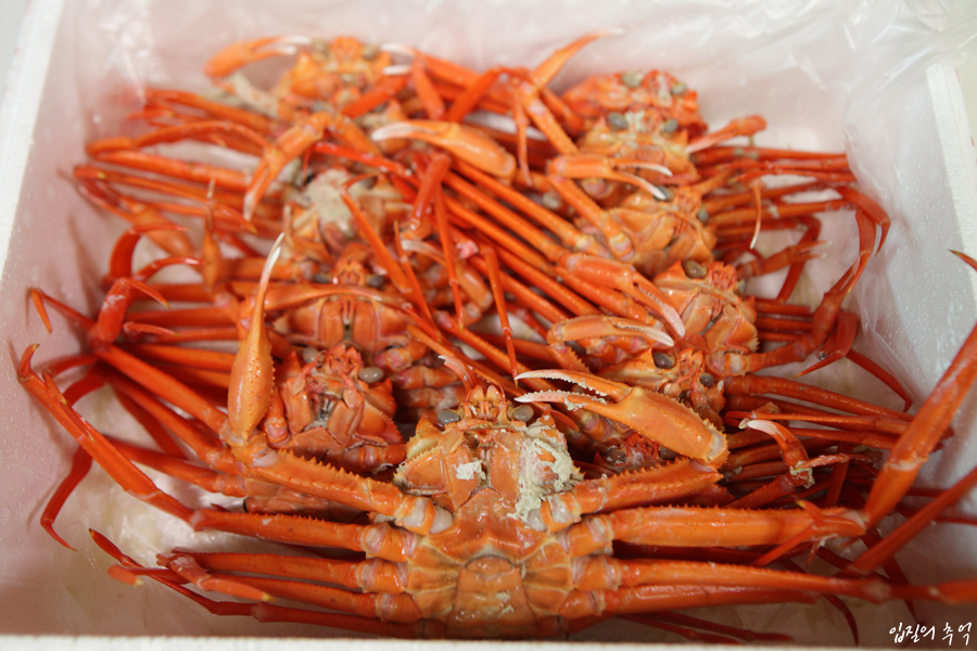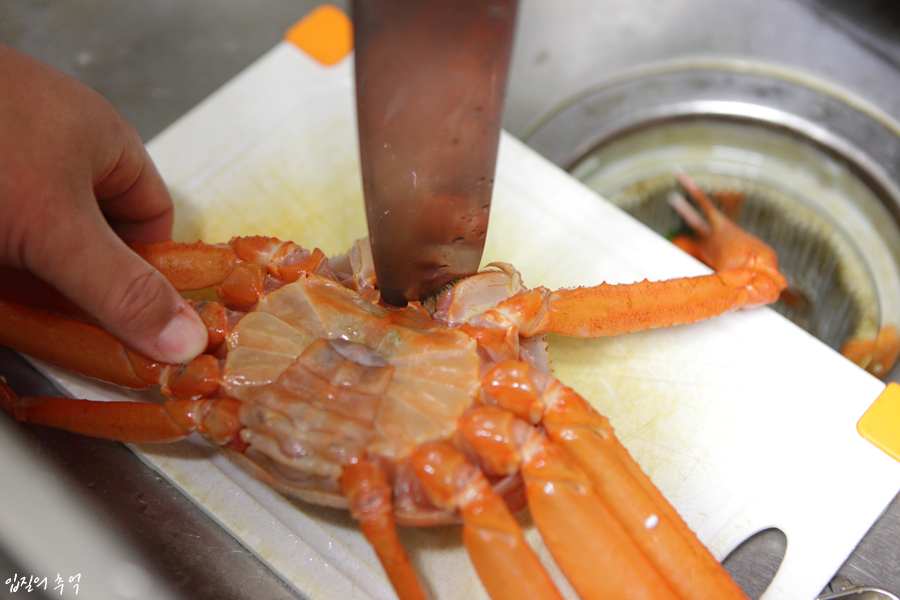 또 하나 참고할 것은 홍게입니다. 홍게는 예외적으로 찜기에 얹을 때 배딱지를 아래로 향하게 놓고 찌는 경우가 많습니다. 홍게는 살아있더라도 대게보다 짠기가 많을 확률이 높아 바닷물을 확실하게 빼 주어야 합니다.