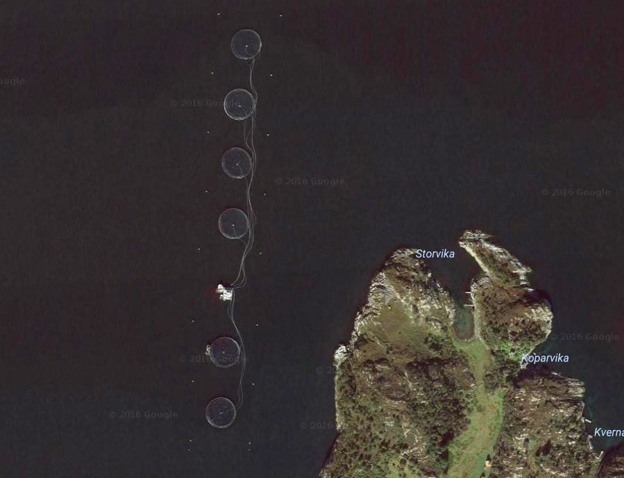 처음에는 항생제를 투여했는데 내성이 생기면서 디플루벤주론과 같은 극약처방을 해야 할 지경에 이른 것입니다. 우선 자세한 이야기를 하기에 앞서 위성 지도에서 바라본 노르웨이 연어 양식장을 보면서 설명하겠다.