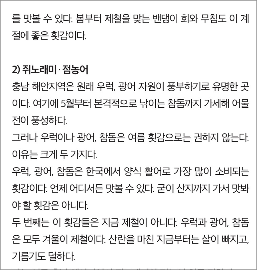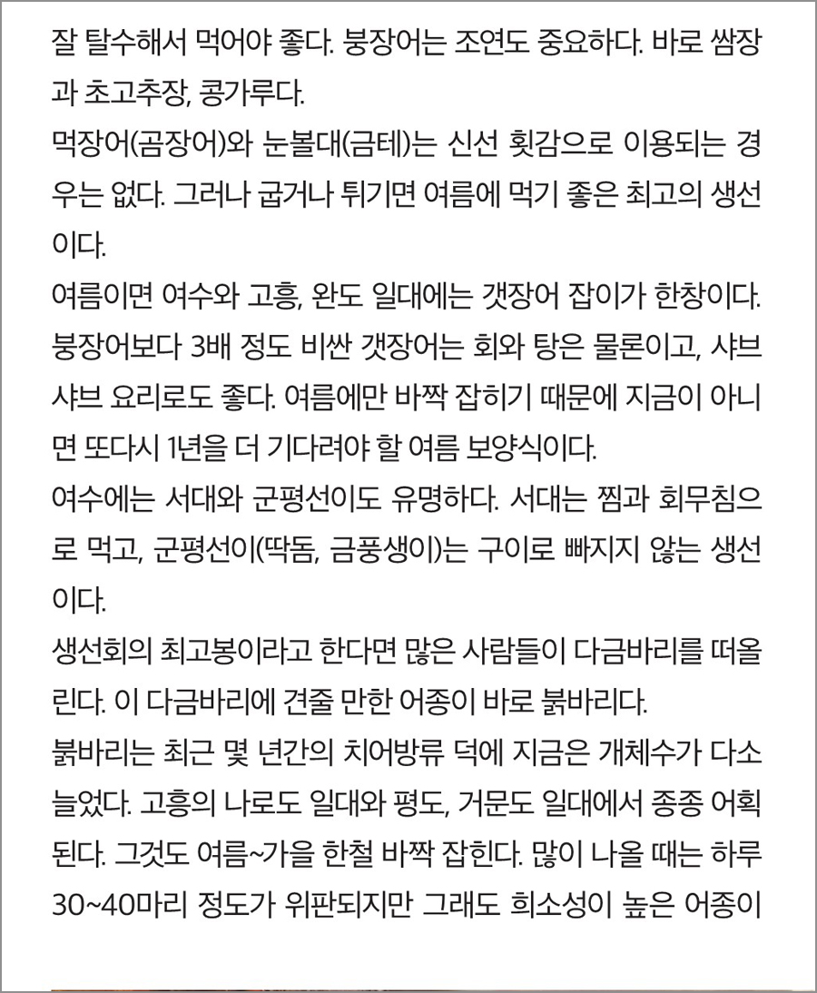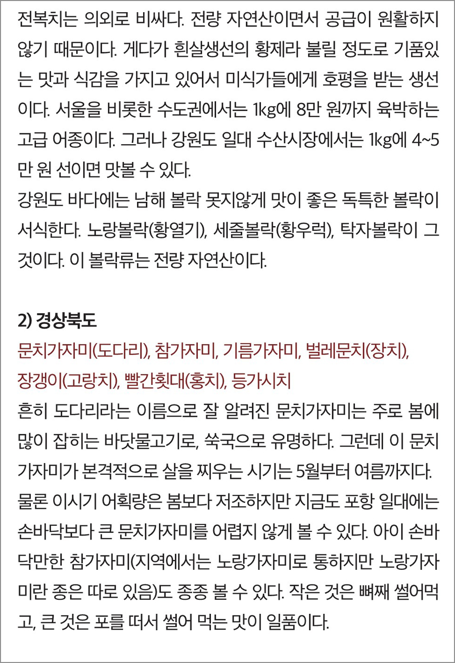 1) 재미있는 수산물 이야기 : 산지별 추천 생선회 - 바닷가에서 꼭 맛봐야 할 별미들