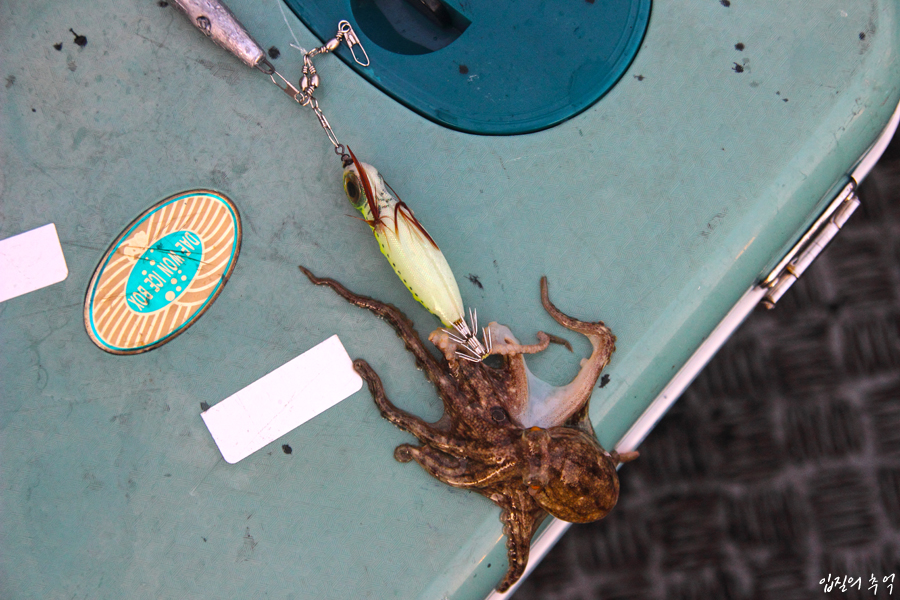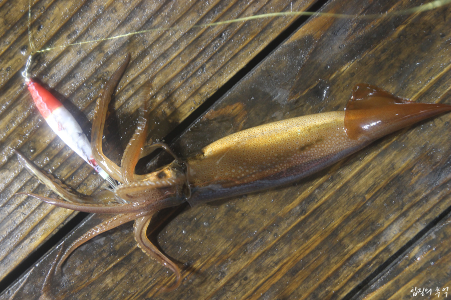 야행성이므로 밤바다 한치 낚시를 하러 왔다가 뜻밖에도 날개오징어가 걸려들기라도 한다면, 덩치에서 뿜어져 나오는 엄청난 힘에 릴에선 굉음(스풀이 역회전할 때 나는 소리)이 나기도 합니다. 낚시인들은 대포알을 닮았다고 하여 ‘대포한치’라 부르지만, 한치가 훌쩍 자라서 된 것은 아니며, 날개오징어라는 별종이었던 것입니다.