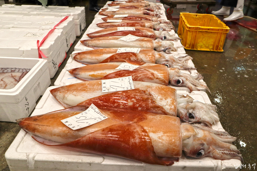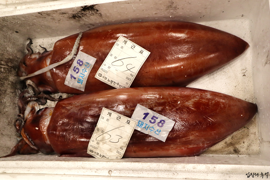 참고로 날개오징어는 외투막 길이만 1m에 달하며, 무게는 20kg 이상 성장하는 대형 오징어종입니다. 비슷한 크기로는 남서 대서양에서 온 ‘훔볼트 오징어’가 있으며 중국집 짬뽕을 비롯해 다양한 음식에 활용된다는 점에서 차이가 있습니다만, 전반적인 맛과 식감에서는 날개오징어가 훔볼트 오징어보다 우위에 있습니다.