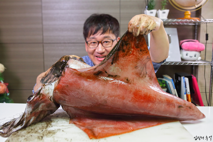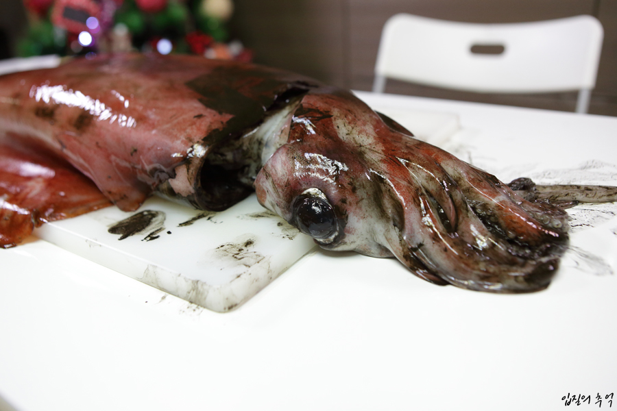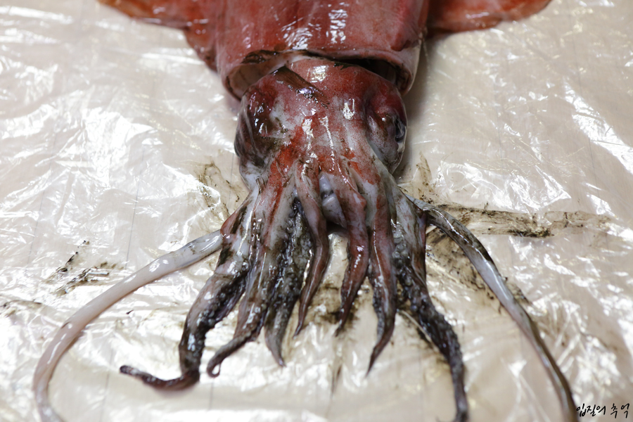가장 좋은 방법은 5kg이상 한 마리를 구매했을 때 여럿이 나눠 먹는 겁니다. 손질은 여타 오징어와 다를 것이 없으며, 내장과 눈알을 제외한 모든 것이 순수한 오징어 살입니다. 이 중에서도 ‘오징어 귀’라 불리는 지느러미 살과 입 주변을 감싼 부위가 독특한 식감을 자랑합니다.