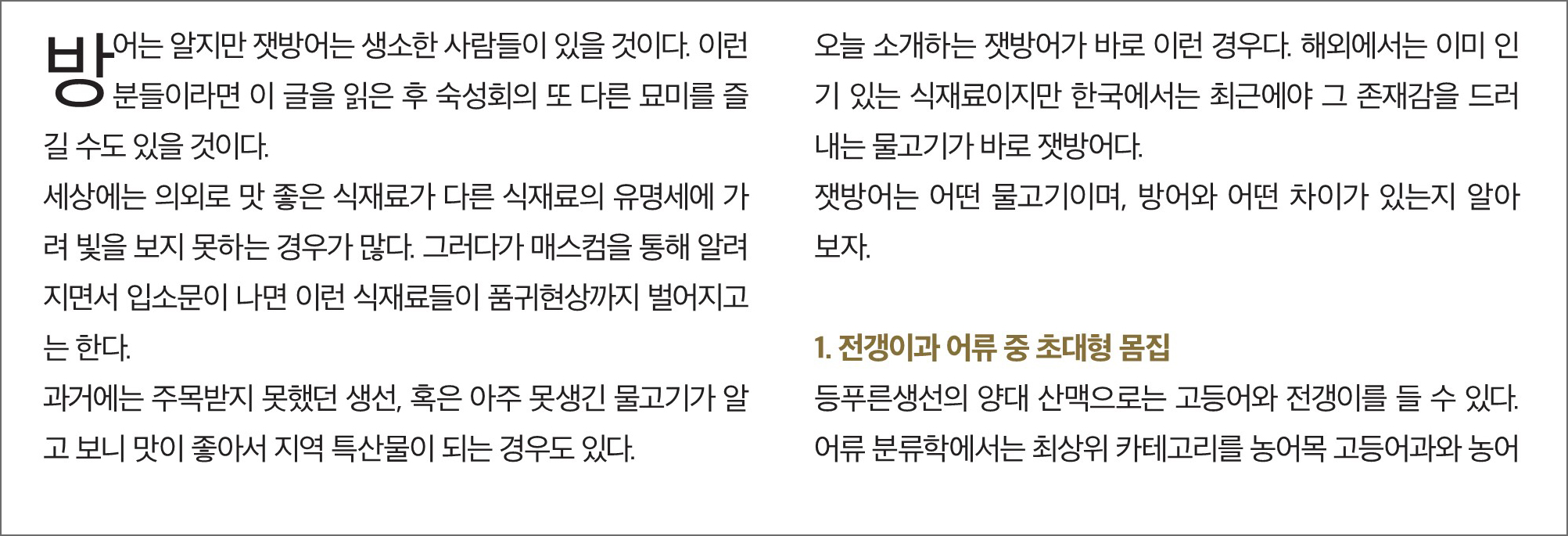 1) 우리 물고기 바로 알기(마지막회) : 방어보다 한 차원 높은 수준급 숙성회의 대명사 - 잿방어