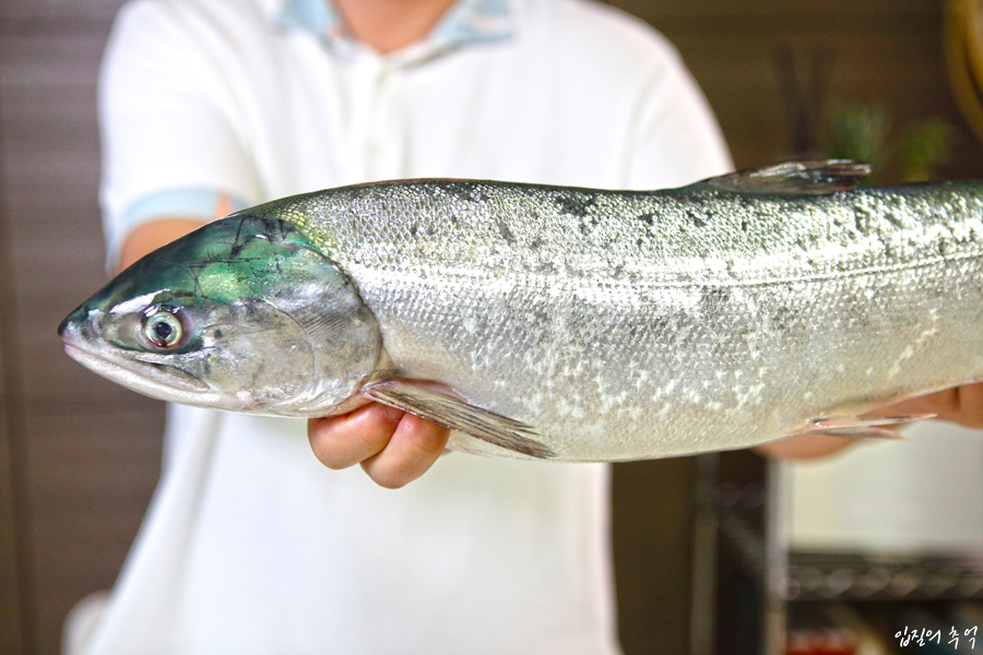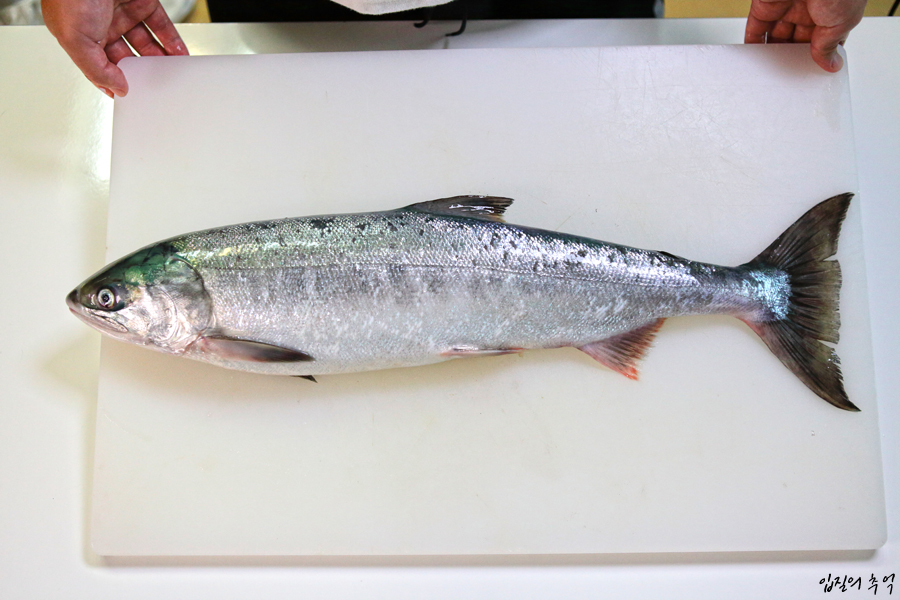여기저기 비늘이 까지고 상처 투성으로 그간 역경을 딛고 긴 시간 헤엄쳐 오다 국내 바다로 진입합니다. 7~9월 사이는 연어를 포획할 수 있는 기간이므로 주로 강원도 앞바다에서 이 연어가 잡히는데요.