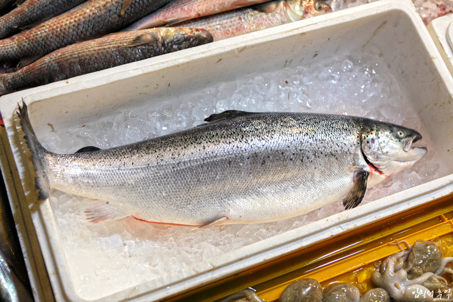 우리나라로 수출되는 연어 중 95% 이상은 대서양 연어라는 종이며, 그중 절반 이상이 노르웨이산 양식이 차지합니다. 나머지는 칠레산 양식 대서양 연어와 호주 태즈매니아산 양식 대서양 연어, 알레스카산 홍연어, 뉴질랜드산 왕연어 등등이 수입됩니다.